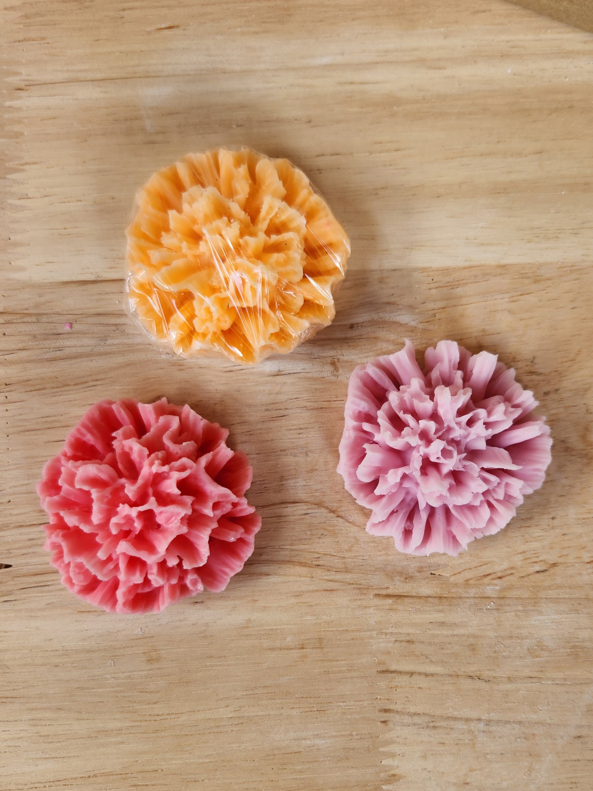 1- Hand-poured carnation-shaped candle with realistic detailing