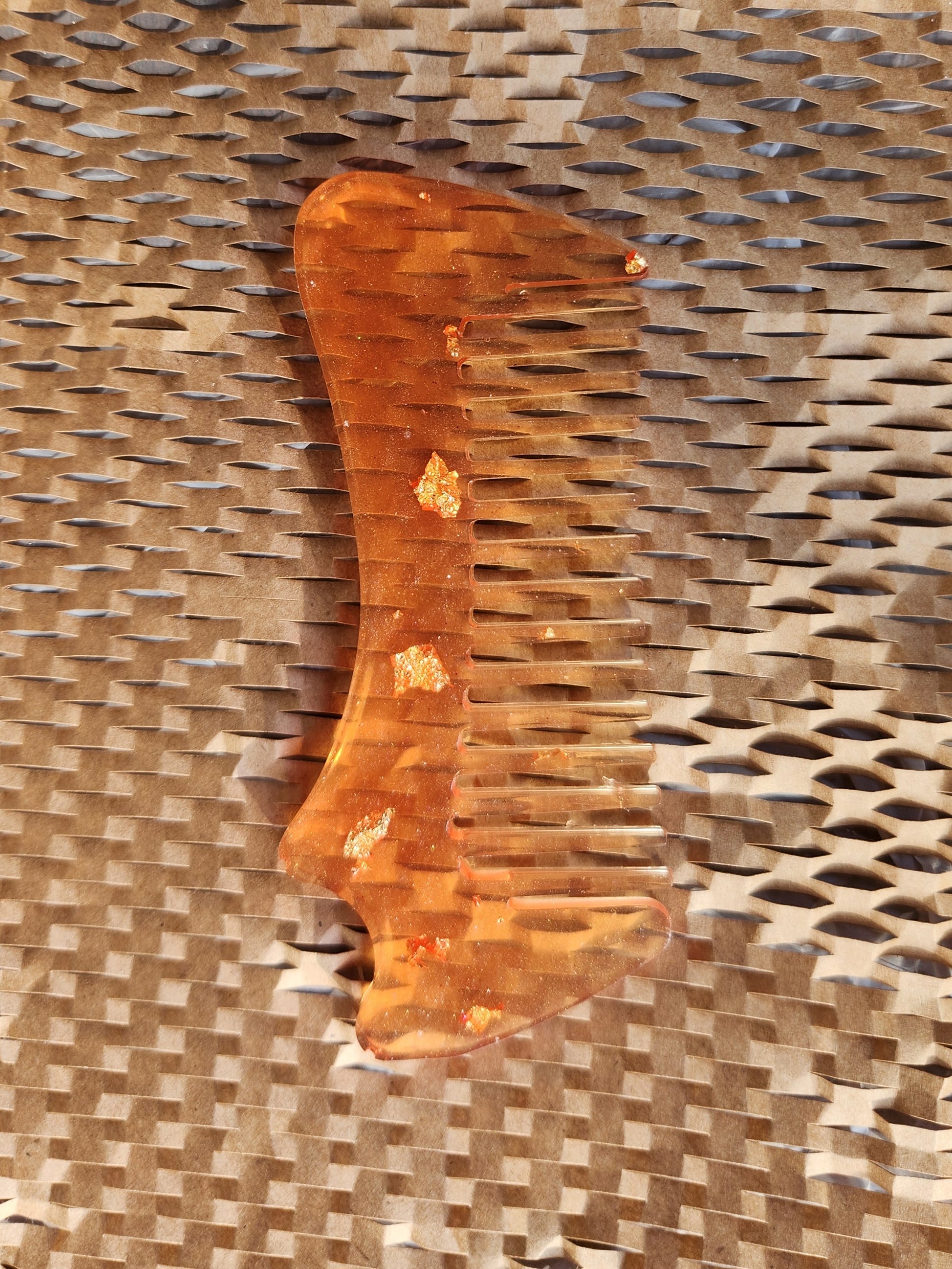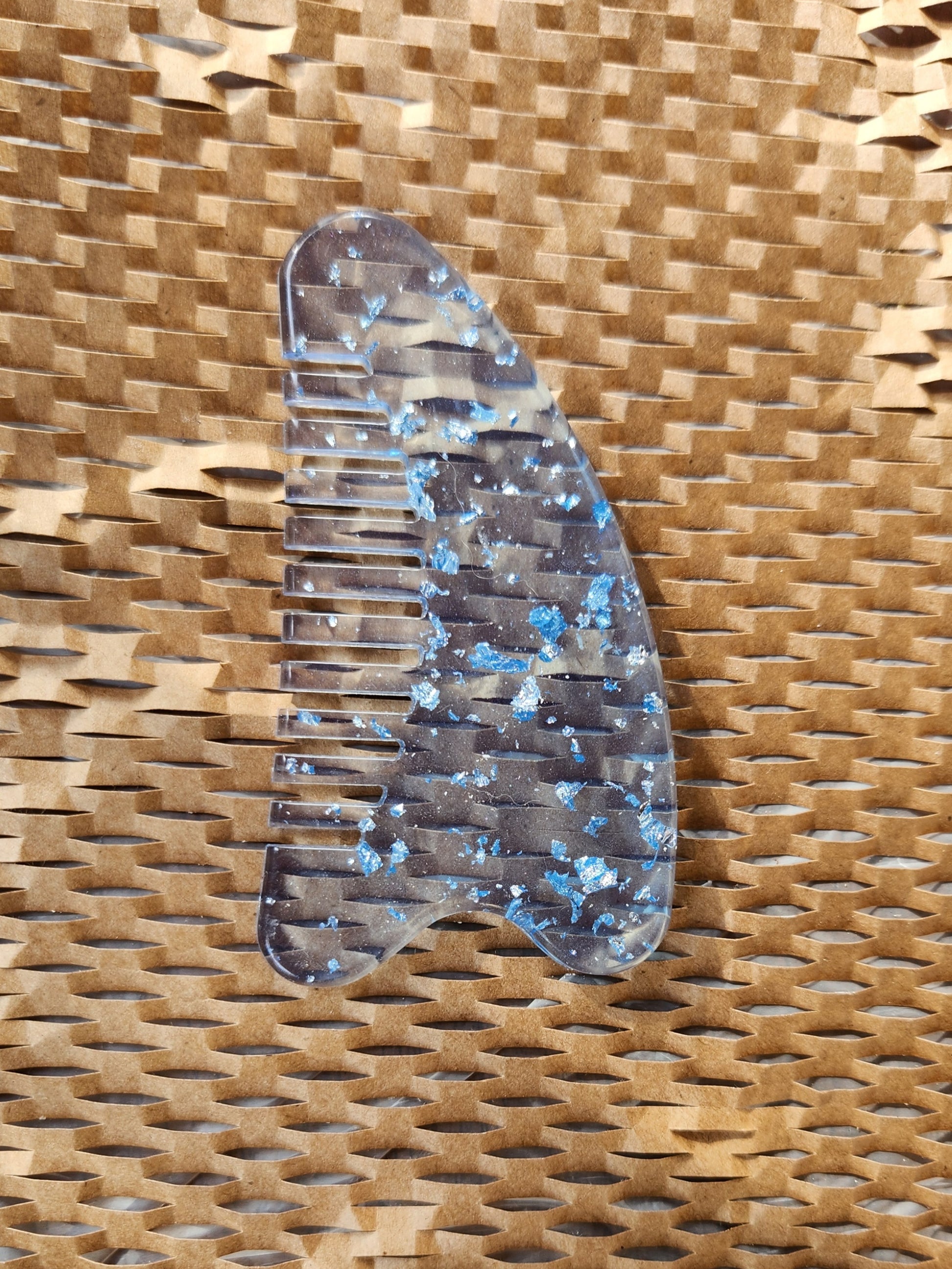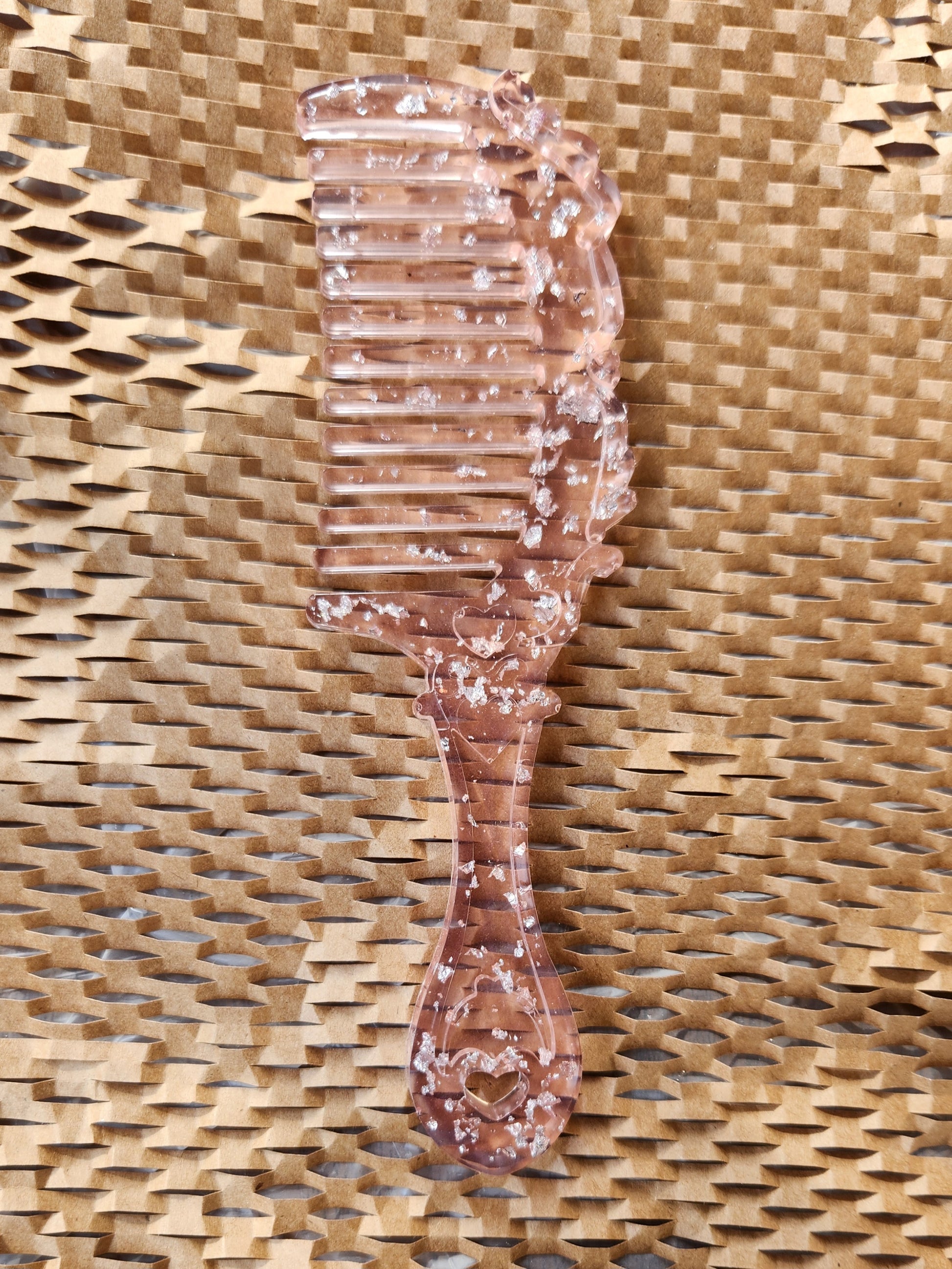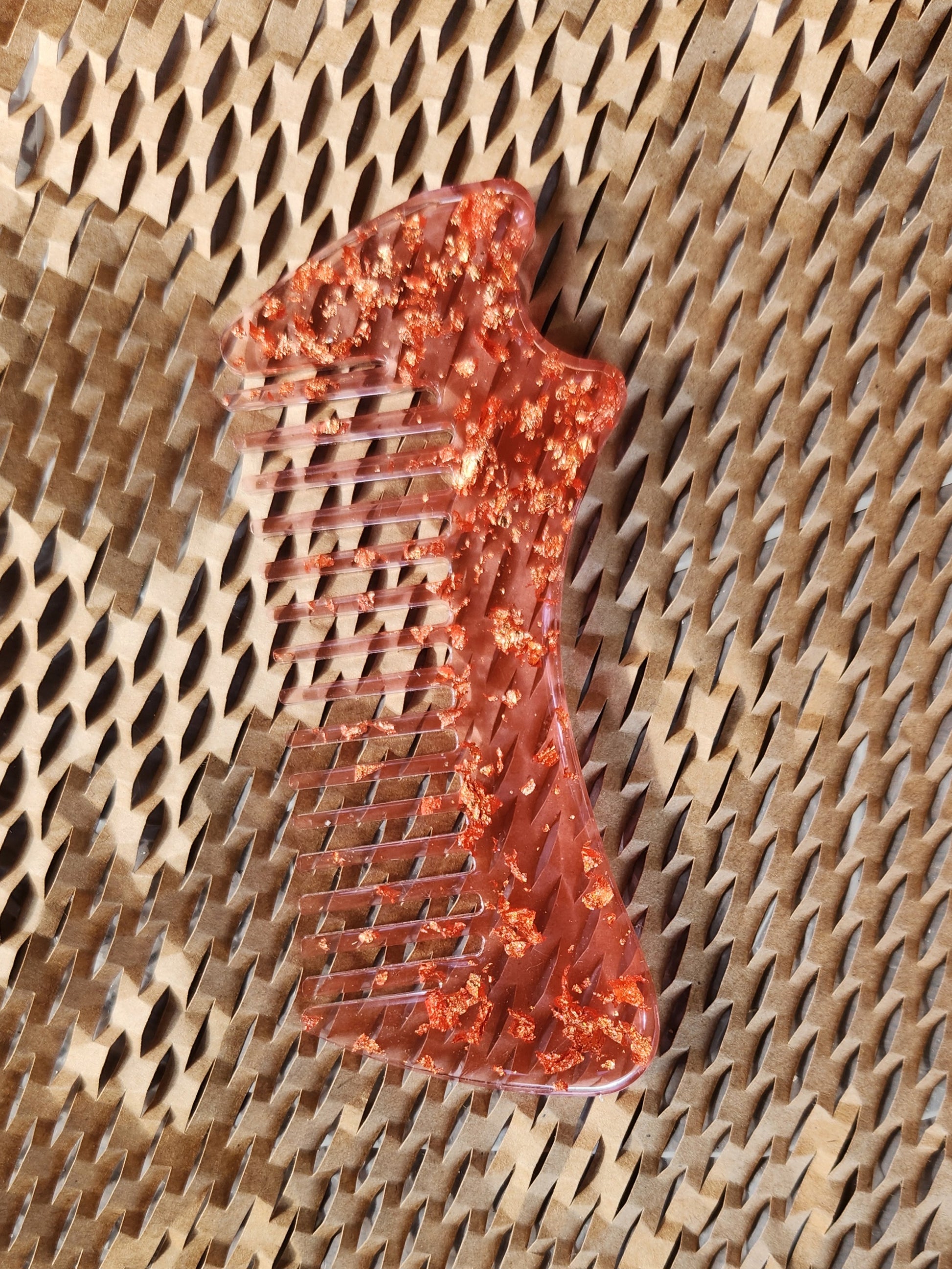 "Handcrafted resin combs designed with a dazzling mix of colors and glitter. Each comb is a unique piece of art, combining durability and style to elevate your haircare routine. Perfect for everyday use or as a thoughtful gift."