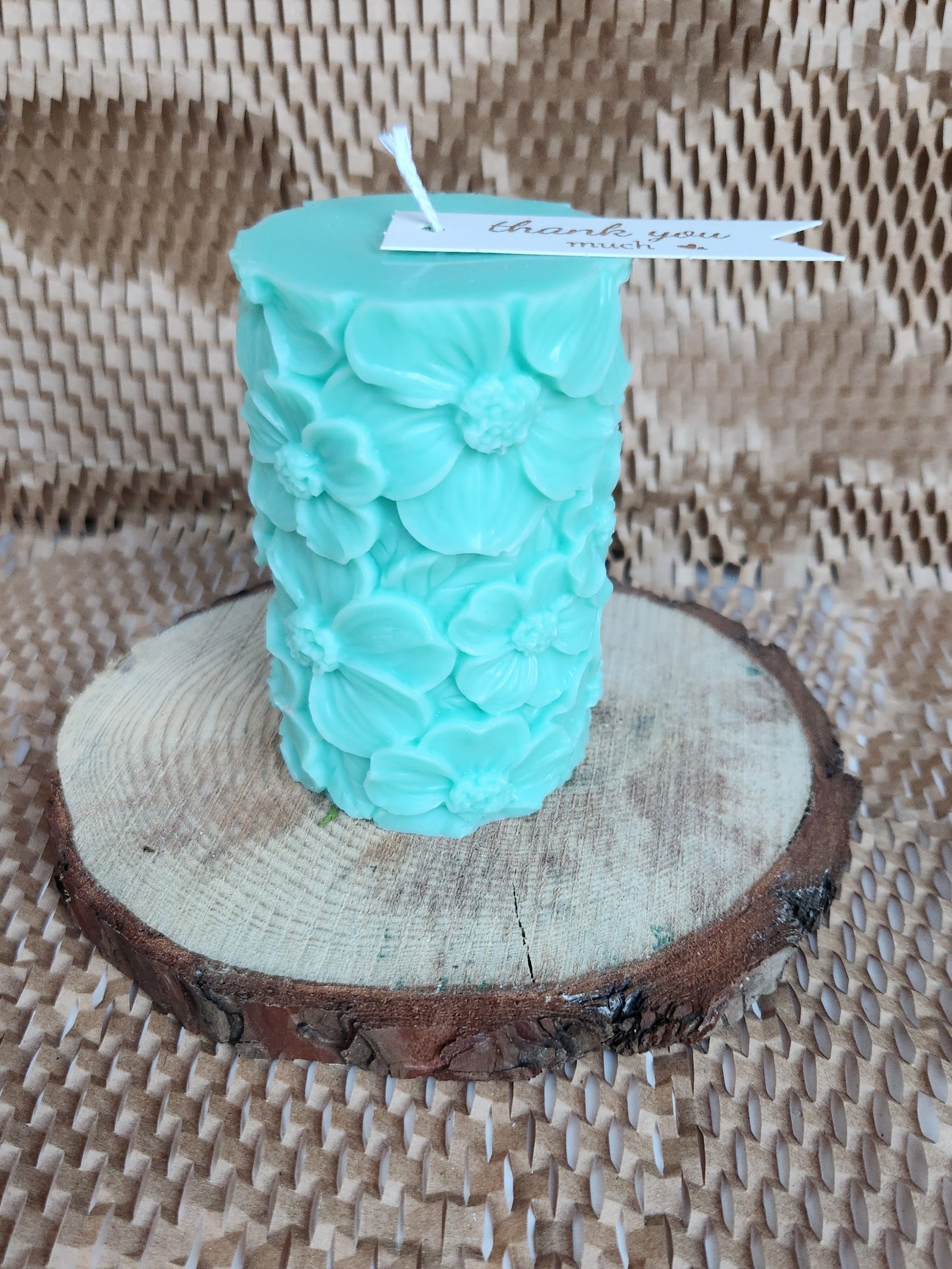 Transform any space into a garden of serenity with our Floral Bliss Pillar Candle, a stunning design adorned with intricate flowers covering the entire surface. This candle symbolizes elegance and natural beauty, making it a perfect decorative piece for weddings, romantic settings, or as a thoughtful gift. Its delicate floral accents and soothing glow create an enchanting ambiance for any occasion.