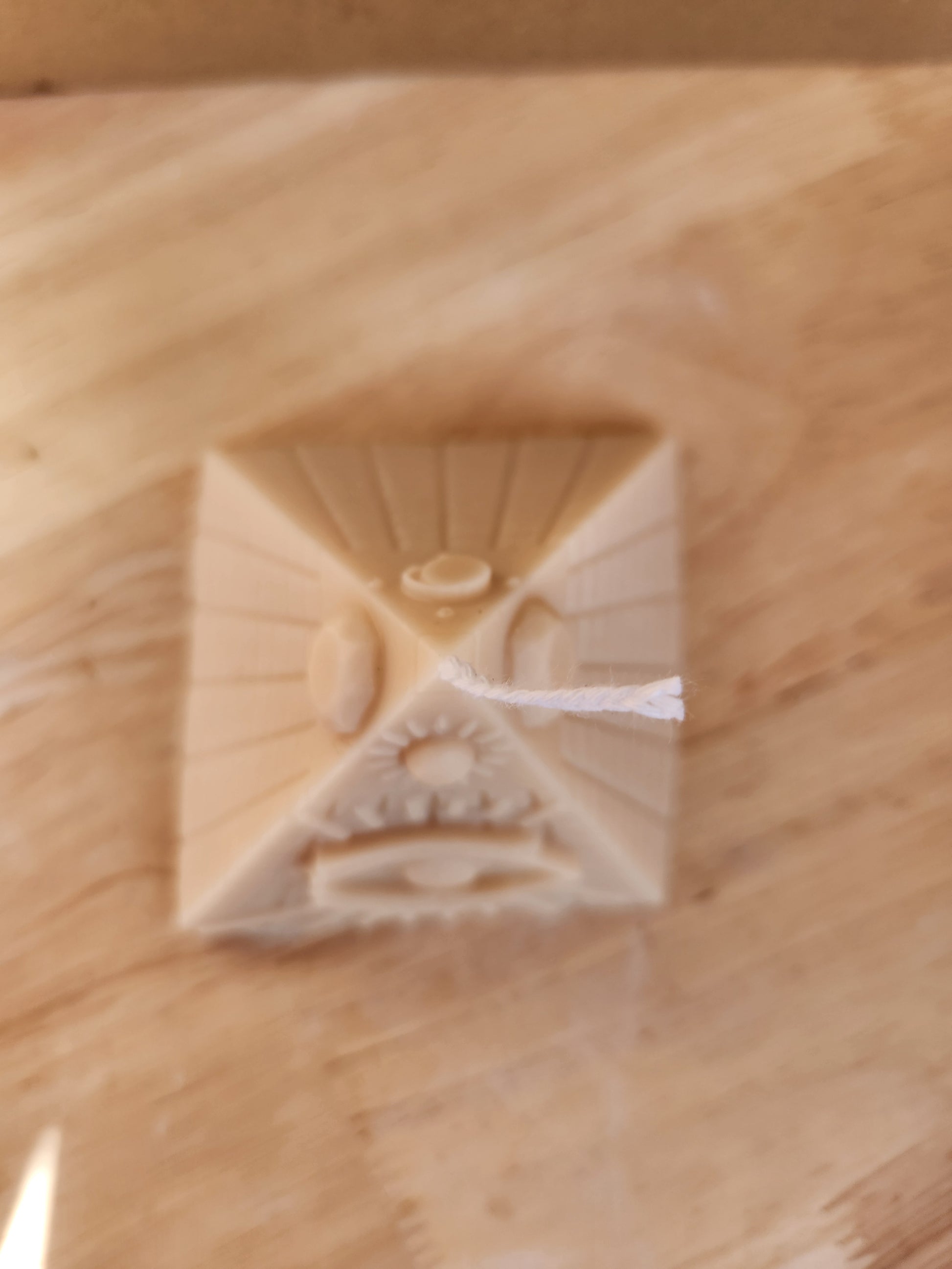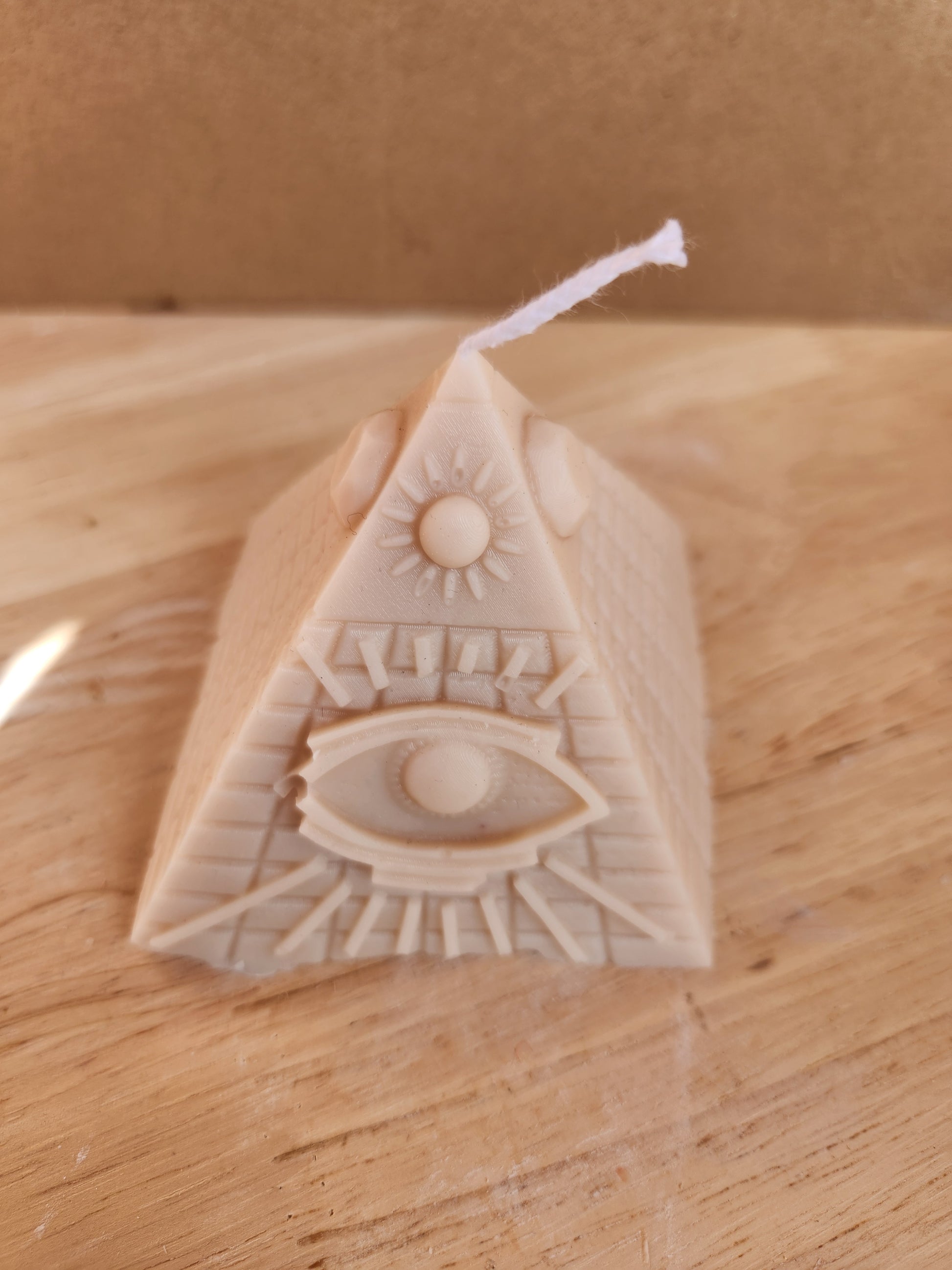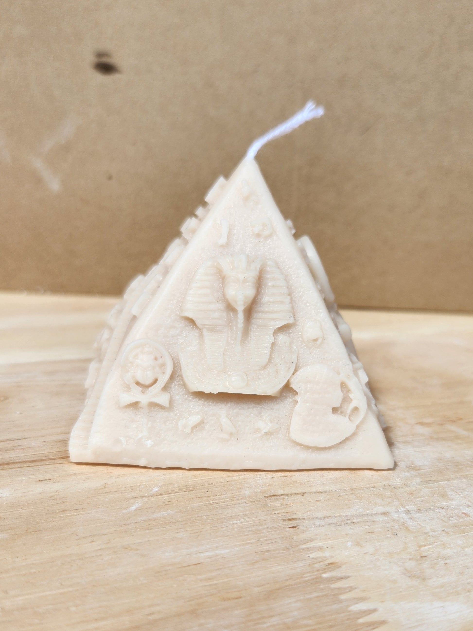 1- Handcrafted pyramid candle with detailed Eye of Pharaoh design and ankh cross.